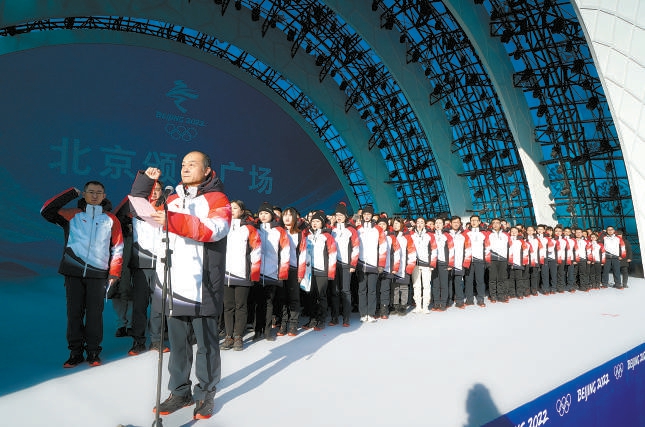 2021年元旦期間,北京頒獎(jiǎng)廣場剛剛落成,團(tuán)隊(duì)在舞臺(tái)上舉行誓師大會(huì)。
