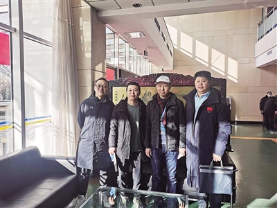 1月22日,劉冠林(左一)和冬殘奧會(huì)開(kāi)閉幕式工作組部分工作人員合影。受訪(fǎng)者供圖