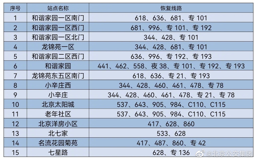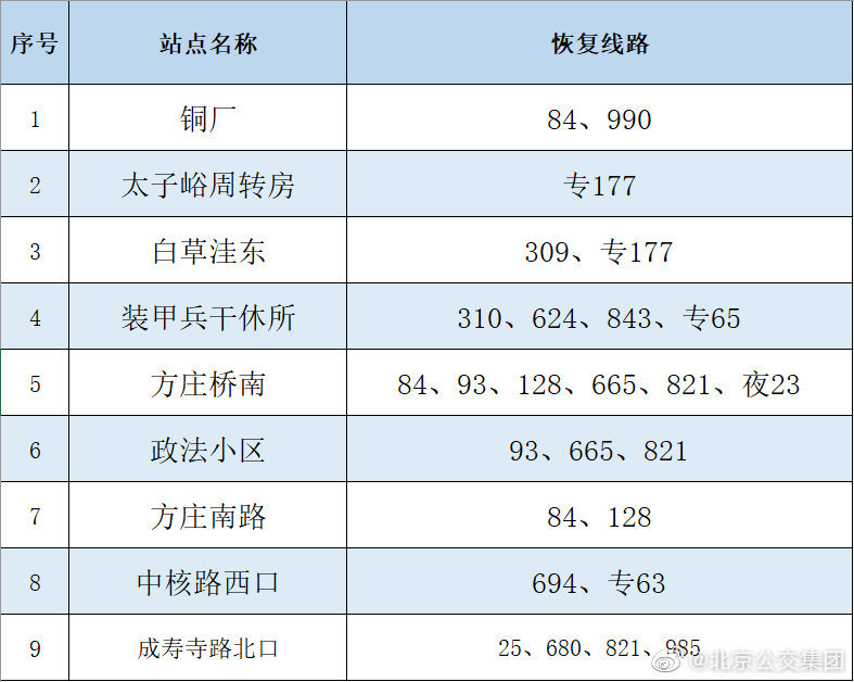 央廣網(wǎng)北京6月16日消息 據(jù)北京公交集團官博消息,按照防疫工作要求,自2022年6月16日首班車起,對前期途經(jīng)昌平區(qū)封管控區(qū)域周邊采取甩站措施的35條線路以及前期途經(jīng)豐臺區(qū)封管控區(qū)域周邊采取甩站措施的18條線路,恢復(fù)正常運營,恢復(fù)信息詳見下表。