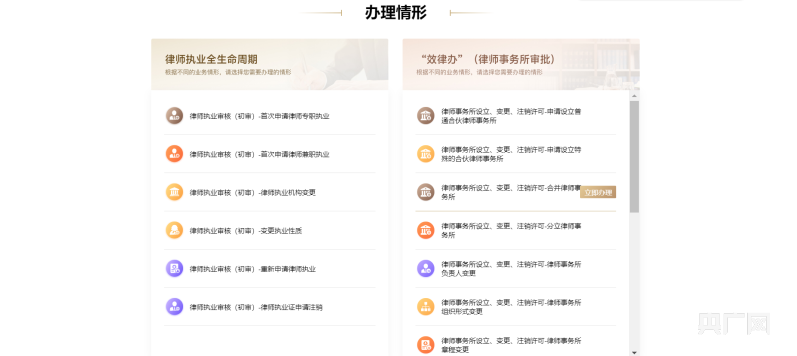 律師執(zhí)業(yè)全生命周期與“效律辦”網(wǎng)頁截圖