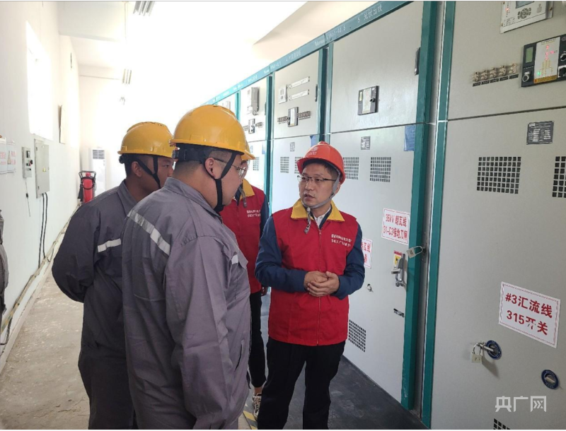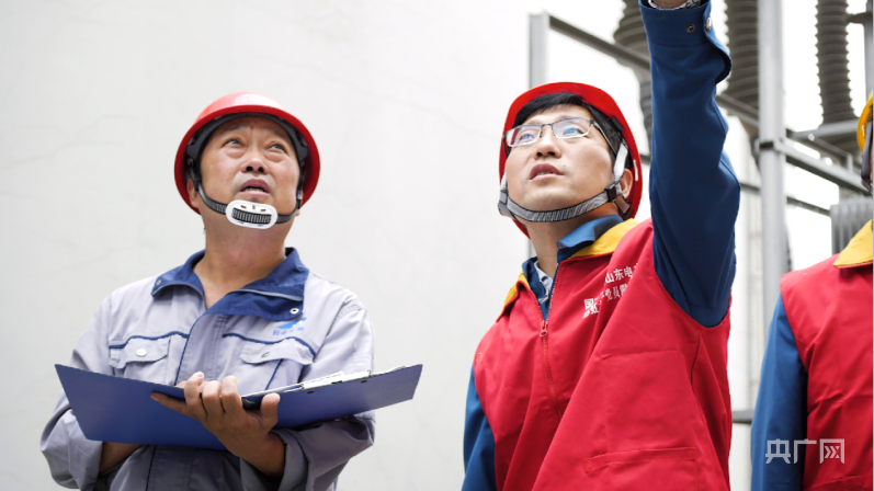 朱宗鋒(右側)到變電現(xiàn)場了解情況(央廣網(wǎng)發(fā) 劉天睿攝)