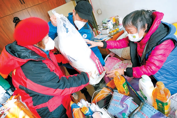昨天,在龍?zhí)督值佬腋I鐓^(qū)養(yǎng)老服務(wù)驛站,“夕陽手拉手互助團(tuán)”和“小棉襖愛老”的志愿者們,將愛心物資送到社區(qū)養(yǎng)老家庭照護(hù)床位的老人手中。疫情下,老年群體更加需要關(guān)注與關(guān)愛,志愿者們以需求為導(dǎo)向,精準(zhǔn)服務(wù)老年人。 本報(bào)記者 方非攝