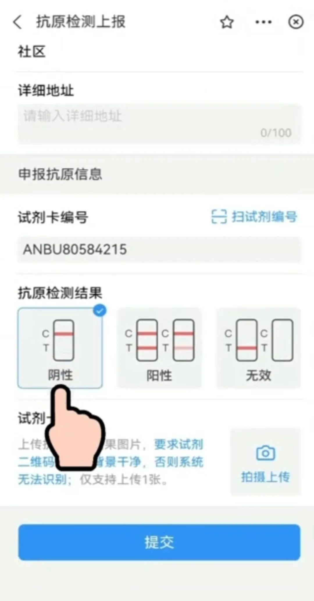 4.上傳抗原檢測試劑盒結果圖片。
