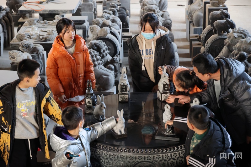 石雕生肖兔特別受孩子們的喜歡(央廣網(wǎng)發(fā) 高新生 攝)