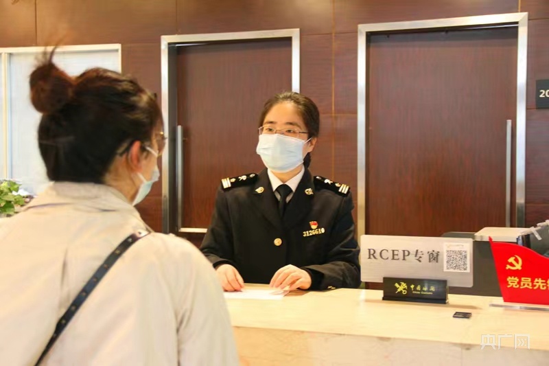 寧波海關(guān)關(guān)員在解答簽證企業(yè)RCEP相關(guān)業(yè)務(wù)咨詢(xún)(央廣網(wǎng)發(fā) 趙悅辰 攝)
