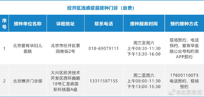 社會(huì)事業(yè)局相關(guān)負(fù)責(zé)人介紹,經(jīng)開區(qū)將繼續(xù)采用提前預(yù)約方式開展自費(fèi)流感疫苗接種工作。目前,經(jīng)開區(qū)共設(shè)立北京博濟(jì)門診部、北京愛育華婦兒醫(yī)院兩個(gè)流感疫苗接種服務(wù)點(diǎn),有接種需求的市民可提前向接種門診預(yù)約咨詢,可通過電話、現(xiàn)場登記、微信公眾號(hào)及其他網(wǎng)絡(luò)預(yù)約方式完成預(yù)約。