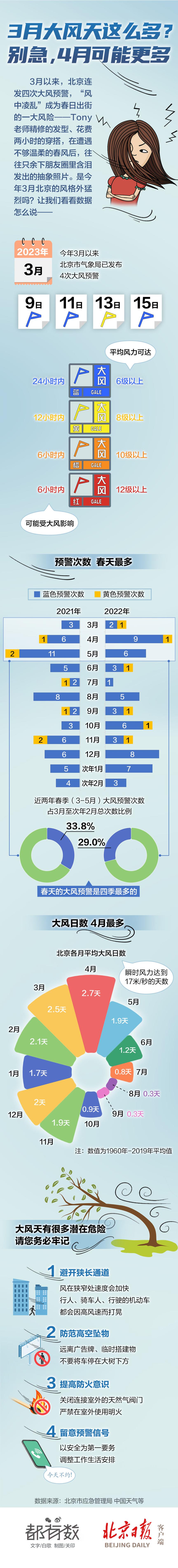 3月以來,北京連發(fā)四次大風(fēng)預(yù)警,“風(fēng)中凌亂”成為春日出街的一大風(fēng)險——Tony老師精修的發(fā)型、花費(fèi)兩小時的穿搭,在遭遇不夠溫柔的春風(fēng)后,往往只余下朋友圈里含淚發(fā)出的抽象照片。是今年3月北京的風(fēng)格外猛烈嗎?讓我們看看數(shù)據(jù)怎么說!