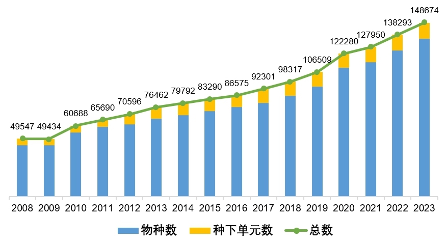 《中國生物物種名錄》歷年數(shù)據(jù)量變化圖 圖片來源:中科院生物多樣性委員會(huì)微信公眾號(hào)