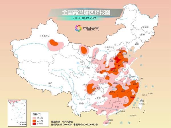 今天(7月10日)開始,我國南北方高溫將連成片,山東、河南及江南、華南等地會出現(xiàn)廣泛的高溫天氣。其中,南方的高溫待機(jī)時間將持續(xù)至本周末,浙江、福建等地或體驗一周的桑拿天,公眾需注意防暑。同時,隨著副熱帶高壓北抬,未來三天長江中下游地區(qū)降水逐漸減弱,北方降雨將明顯增多。