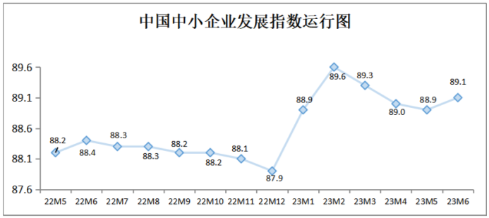 中國中小企業(yè)協(xié)會今天(10日)發(fā)布,隨著推動經(jīng)濟回暖向好的政策措施持續(xù)發(fā)力生效,我國經(jīng)濟總體保持恢復(fù)態(tài)勢,中小企業(yè)發(fā)展指數(shù)止跌回升。6月中國中小企業(yè)發(fā)展指數(shù)(SMEDI)為89.1,比上月上升0.2點,結(jié)束連續(xù)3個月下降態(tài)勢,且高于2022年同期水平。