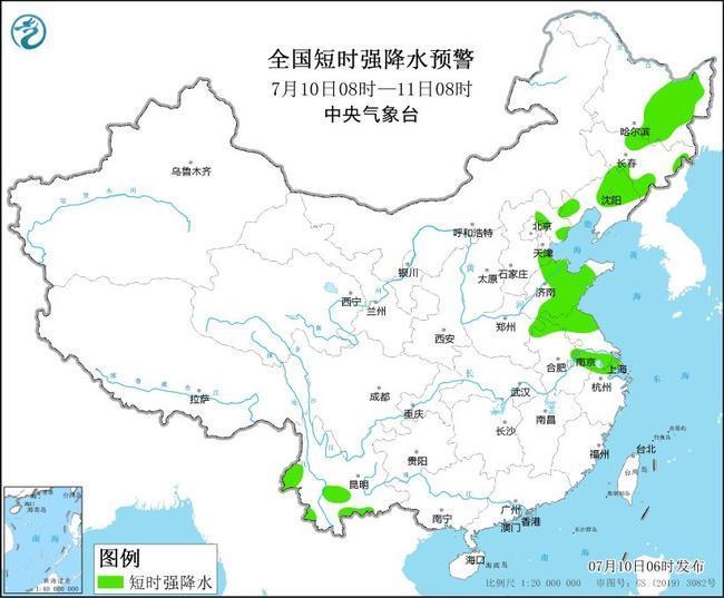 中央氣象臺(tái)7月10日6時(shí)繼續(xù)發(fā)布強(qiáng)對(duì)流天氣藍(lán)色預(yù)警:預(yù)計(jì)7月10日08時(shí)至11日08時(shí),吉林東南部、遼寧北部和西部、山東中東部和南部、江蘇北部和南部、浙江北部等地的部分地區(qū)將有8-10級(jí)雷暴大風(fēng)或冰雹天氣;黑龍江中東部、吉林中東部、遼寧中北部和西南部、河北東北部、北京東北部、天津南部、山東、安徽北部、江蘇北部和南部、上海、浙江北部、云南西部和南部等地的部分地區(qū)將有短時(shí)強(qiáng)降水天氣,小時(shí)雨量30-50毫米,局地可達(dá)60毫米以上。