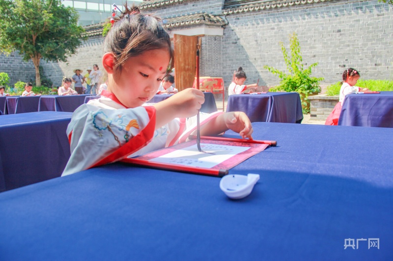 央廣網(wǎng)寧波8月22日消息(記者 張雯雯 通訊員 方舟 安雨晨)樹影婆娑,古韻悠揚(yáng),鼓聲清越,翰墨飄香。8月22日,在新學(xué)年來臨之際,寧波市江北區(qū)莊橋街道馬徑村文化禮堂舉行了一場別開生面的“開筆啟智慧 閱讀潤人生”開筆禮?;顒釉诿颗e行,20多名即將上小學(xué)的小朋友身著漢服,在開筆儀式中感受中國傳統(tǒng)文化的魅力。