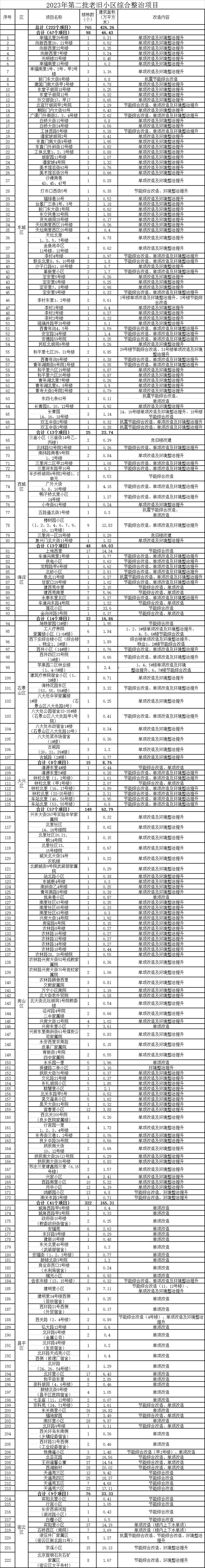 ?。?023年第二批老舊小區(qū)綜合整治項目名單,圖源:北京市住建委,央廣網(wǎng)發(fā))