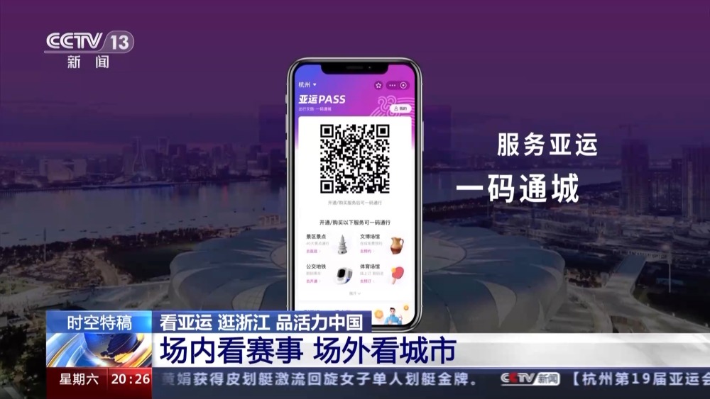 這樣細(xì)致、貼心的理念已經(jīng)滲透到了杭州公共服務(wù)的方方面面。還有更方便的,您看我手上這個(gè)二維碼叫亞運(yùn)pass碼,現(xiàn)在我們只要通過(guò)這一個(gè)二維碼,就可以乘公交、乘地鐵、景區(qū)入園等等功能,不用再在各種不同的二維碼之間來(lái)回切換了。