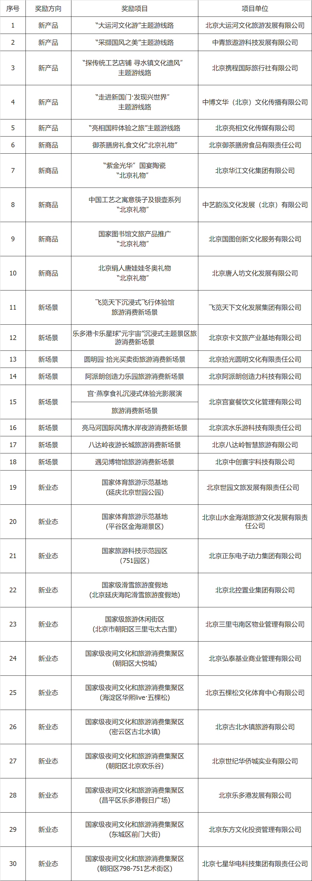 北京文旅局確定2022年北京市擴(kuò)大文旅新消費(fèi)獎(jiǎng)勵(lì)項(xiàng)目名單