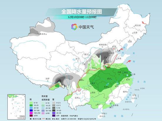 “預(yù)計(jì)12月10日開(kāi)始,隨著暖濕氣流加強(qiáng)北上,與北方南下的冷空氣相結(jié)合,中東部地區(qū)將迎來(lái)大范圍雨雪天氣。”目前來(lái)看,10日至11日,華北、東北部分地區(qū)有小到中雪、局地大雪,黃淮北部、陜西北部有雨轉(zhuǎn)雨夾雪或雪,黃淮南部、江漢、江淮、江南、華南北部等地有小到中雨,局地大雨。