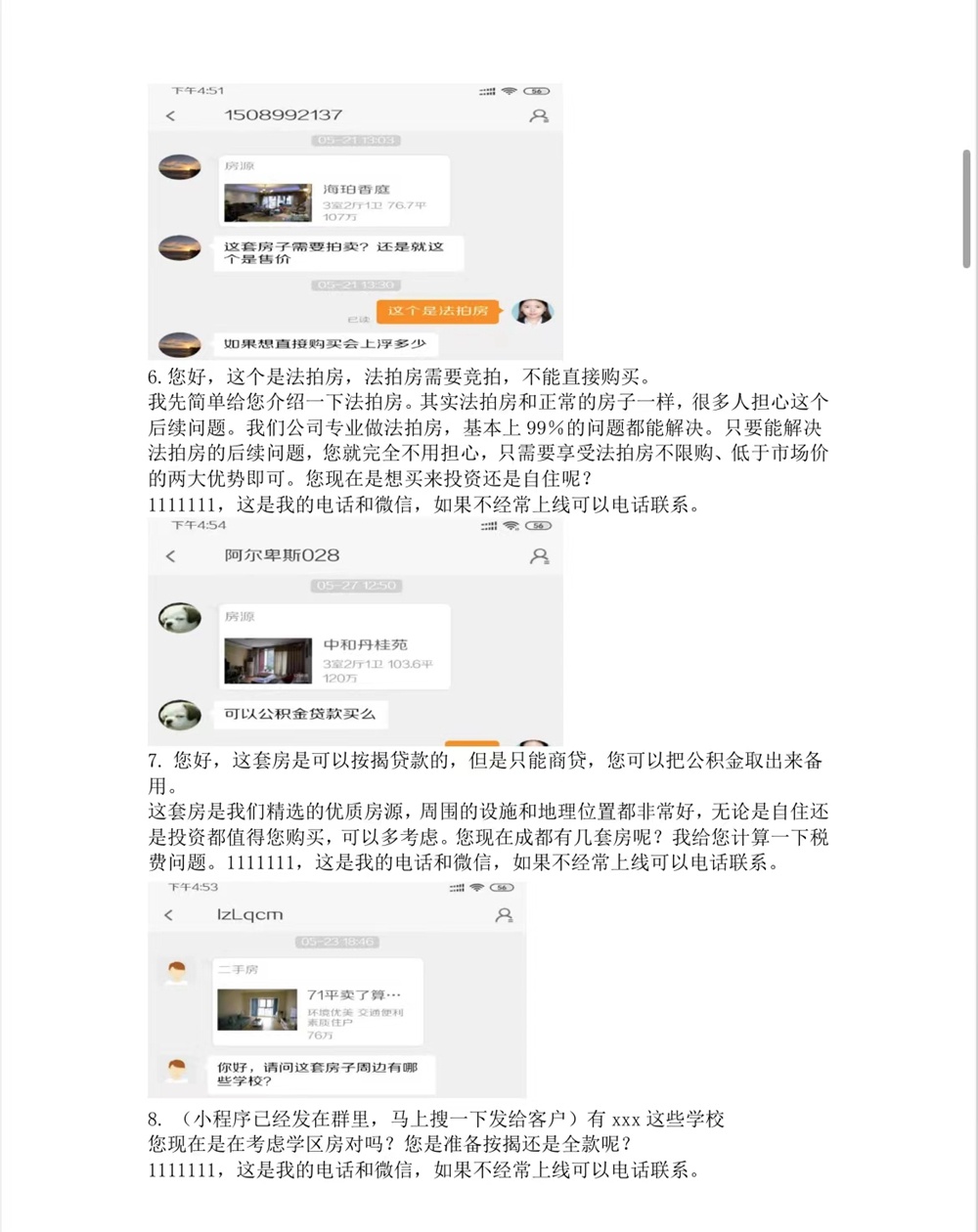 一些消費(fèi)者還將“法拍房中介”的預(yù)約看房、誘導(dǎo)話術(shù)及簽訂合同的套路總結(jié)出來,提醒更多人。