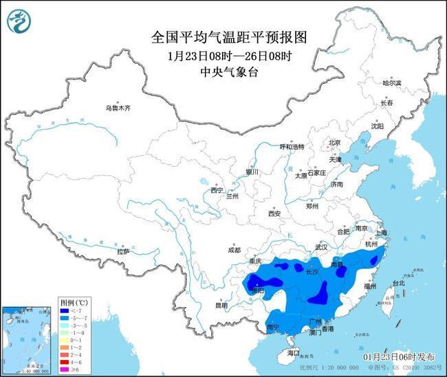 中央氣象臺(tái)1月23日06時(shí)繼續(xù)發(fā)布低溫藍(lán)色預(yù)警:預(yù)計(jì),1月23日至25日,貴州、湖南、江西、浙江中南部、福建西部、廣東、廣西中東部等地最低氣溫或平均氣溫較歷史同期偏低5℃以上,其中,貴州中東部、湖南西北部、江西中南部、浙江南部、廣東西北部等地的部分地區(qū)偏低7℃以上,最低氣溫0℃線(xiàn)將位于廣西北部、廣東北部一帶 。