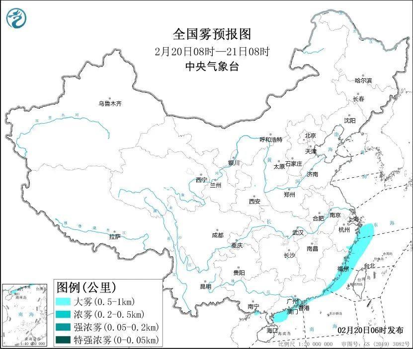 預(yù)計,20日白天至夜間,東海西部海域、浙閩沿岸海域、臺灣海峽、廣東沿岸海域、廣西沿岸海域?qū)⒂写箪F,能見度不足1公里。此外,20日早晨至上午,浙江東南部、廣東東南部等地將有大霧天氣,局地有能見度不足500米的濃霧。