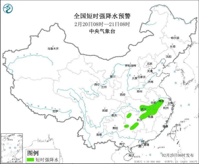 預(yù)計2月20日8時至21日8時,安徽西南部、湖北東部和南部、湖南中北部和西南部、江西中北部、貴州東南部、廣西東北部等地的局地將有8至10級雷暴大風(fēng)或冰雹天氣;安徽中南部、江蘇西南部、湖北東部、湖南南部和西部、江西北部、廣西東北部等地的部分地區(qū)將有短時強降水天氣,最大小時雨量20至30毫米,局地可達(dá)35毫米以上。