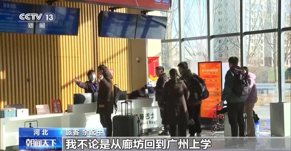 旅客 余配中:廊坊航站樓開設以后,我不論是從廊坊回到廣州上學,還是從廣州回家,都有機場的免費大巴接送,更加方便快捷。