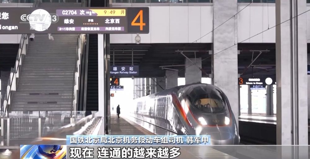 國(guó)鐵北京局北京機(jī)務(wù)段動(dòng)車組司機(jī) 韓軍甲:剛開(kāi)車到雄安的時(shí)候,這里只是一座車站?,F(xiàn)在,連通的越來(lái)越多,像去年年底天津方向過(guò)來(lái)的津興高鐵,和現(xiàn)在正在建設(shè)當(dāng)中的南向的雄商、西向的雄忻高鐵,這里將是一座新的樞紐,想一想非常開(kāi)心,我想多開(kāi)幾年高鐵。