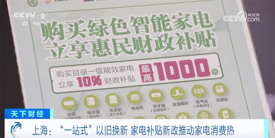 央視網(wǎng)消息:日前,國務院印發(fā)《推動大規(guī)模設(shè)備更新和消費品以舊換新行動方案》,明確實施消費品以舊換新行動。上海市從3月30日起實施新一輪綠色智能家電消費補貼政策,對16大類一級能效家電產(chǎn)品進行補貼,各大商超賣場也推出“一站式”以舊換新、延伸局部改造等補貼及服務。