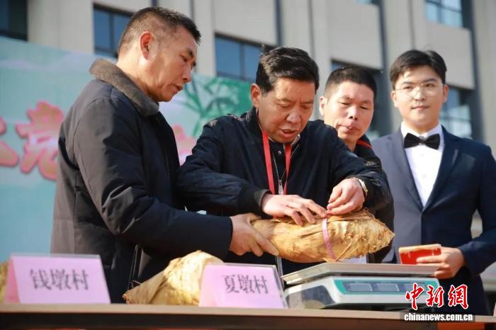 中新網(wǎng)南平1月19日電(廖敏愷 宗治明 陳沁林)“圍徑46.2厘米,重5.55斤,夏墩村獲得第一名!”隨著專家評定結(jié)果揭曉,福建南平順昌縣嵐下鄉(xiāng)郭巖廣場瞬間沸騰,游客紛紛舉起手機(jī)記錄“筍王”風(fēng)采。種植戶劉樂明難掩激動:“我們的筍來自自家山林,自然生長、品質(zhì)上乘!”