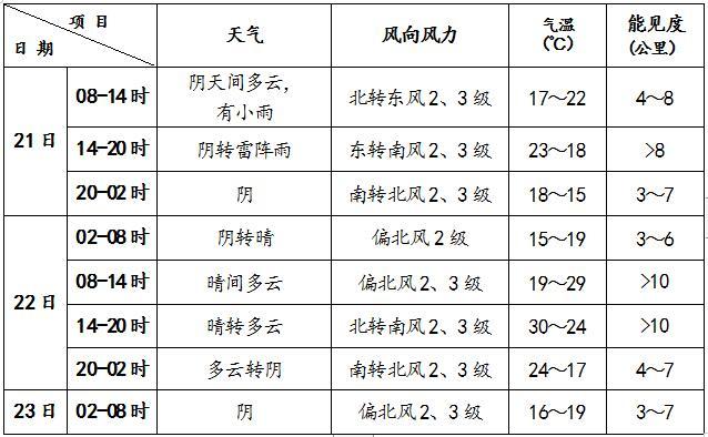 預(yù)計(jì)23-28日期間,大部分時(shí)間本市天氣為晴到多云。受冷空氣影響,23日天空云量較多,夜間山區(qū)有陣雨,降雨對(duì)城區(qū)影響不大;24-26日多3、4級(jí)偏北風(fēng)。該期間氣溫呈上升趨勢(shì),白天最高氣溫24~34℃,夜間最低氣溫15~20℃。