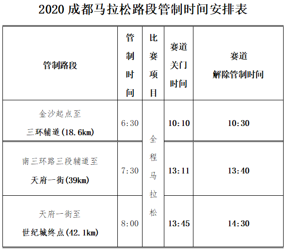 為保障2020成都國際馬拉松賽事的順利進行,組委會將會在以下時段占用部分社會道路進行賽事所需設(shè)施的搭建工作: