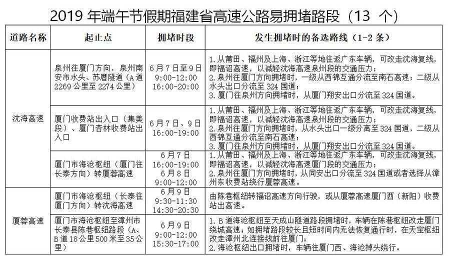 福建交警發(fā)布端午節(jié)假期高速交通安全出行提示 預(yù)測有3個車流高峰時段