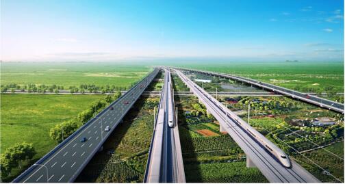 北京大興國際機場高速、京雄城際鐵路、軌道交通新機場線并走廊效果圖。(北京市發(fā)改委供圖)