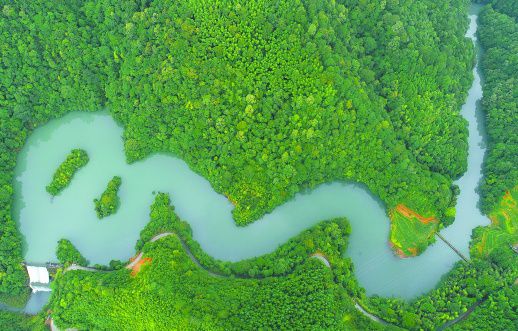 6月18日,桂東縣青山鄉(xiāng)寨坪村,兩江口河猶如一條“巨龍”蜿蜒盤旋在青山之間。近年來,桂東縣實(shí)施有礦不挖,有林不砍,大面積封山育林等措施,原始(次)森林區(qū)域得到嚴(yán)格保護(hù)。目前,全縣已建成生態(tài)公益林100余萬畝,保持完好的原始(次)森林60余萬畝。鄧仁湘 攝