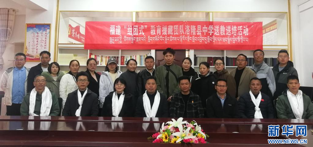 西藏昌都洛隆縣中學領導和加入閩昌名師工作室的老師,與福建“組團式”教育援藏團隊“送教送培”小分隊合影。5月10日攝