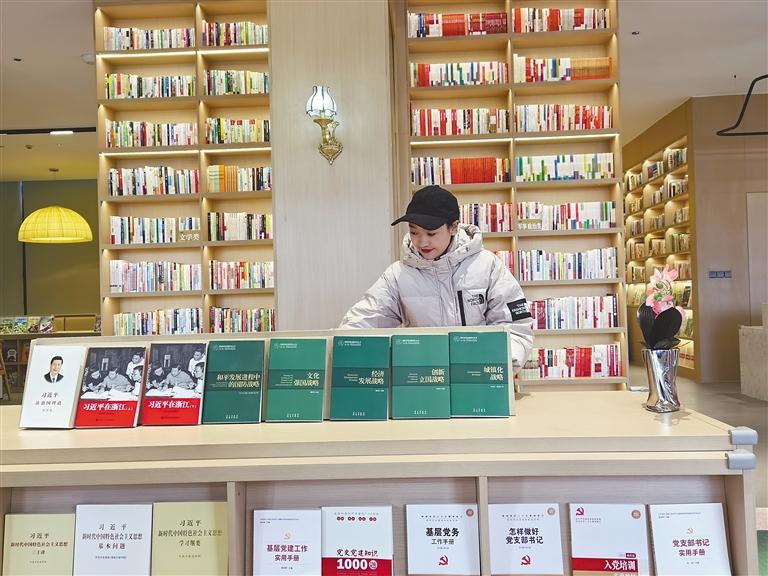 那曲籍高校畢業(yè)生央曲在“溫暖嘉·色尼城市書(shū)房”(嘉興市在那曲援建的首座城市書(shū)房)工作。記者 萬(wàn)靖 攝