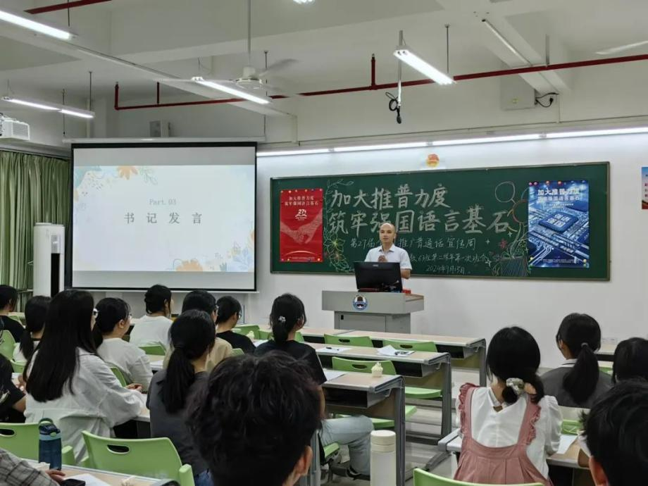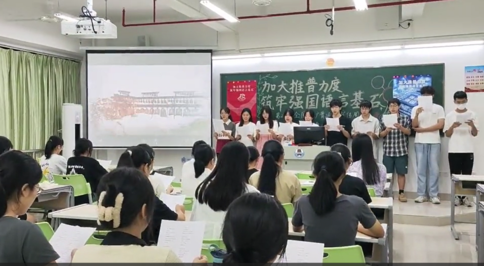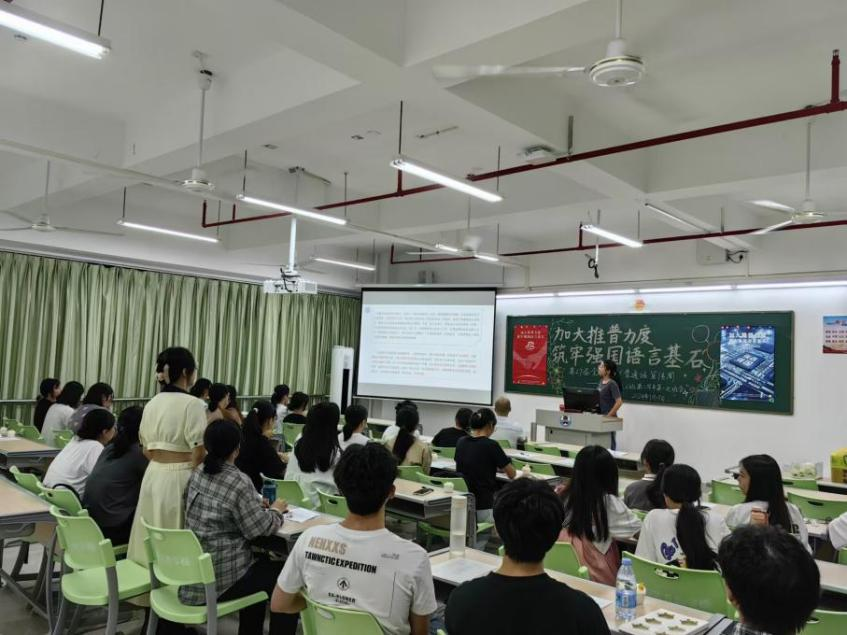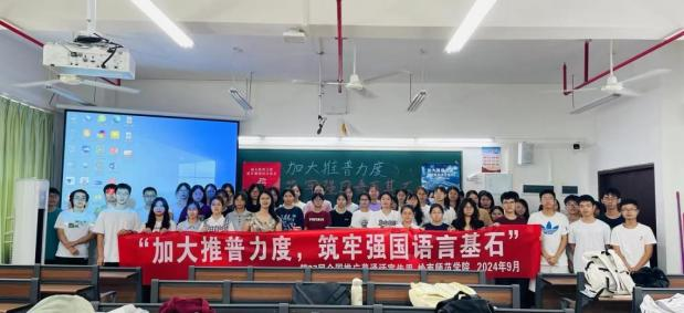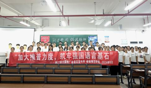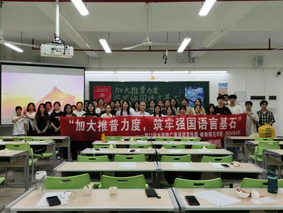 新時代教育高質(zhì)量發(fā)展的浪潮中,加強(qiáng)國家通用語言文字教育是提升國民素質(zhì)、促進(jìn)文化認(rèn)同、推動社會進(jìn)步的重要基石。嶺南師范學(xué)院積極響應(yīng)國家關(guān)于加強(qiáng)國家通用語言文字推廣普及的號召,圍繞“加大推普力度,筑牢強(qiáng)國語言基石”第27屆全國推普周主題,依托學(xué)?!督處熣Z言》課程組,成功舉辦了一系列豐富多彩、特色鮮明的語言文化活動,不僅彰顯了學(xué)院在師范教育領(lǐng)域的深厚底蘊與創(chuàng)新活力,更為國家語言文字建設(shè)和教育強(qiáng)國戰(zhàn)略貢獻(xiàn)了重要力量。