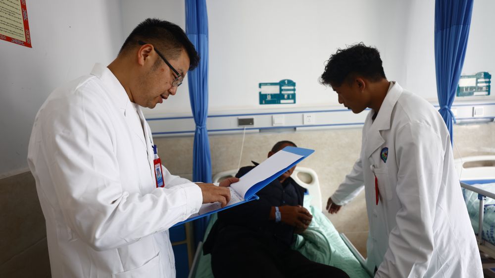 向桂林是一名援藏醫(yī)生,2023年3月,他從重慶市萬(wàn)州區(qū)來(lái)到西藏自治區(qū)昌都市察雅縣開展醫(yī)療援藏工作。在察雅的一年半里,向桂林和隊(duì)員們參加了一百多次義診和下鄉(xiāng)指導(dǎo),累計(jì)接診門診患者1000余人次、救治住院患者400余人次,開展手術(shù)35臺(tái),申報(bào)新技術(shù)10項(xiàng)。今年國(guó)慶,向桂林選擇繼續(xù)留守工作崗位?!爸荒茉谝曨l通話里和家人團(tuán)聚了。但這是我們的責(zé)任更是一種榮譽(yù)?!毕蚬鹆终f。