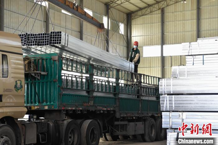 圖為物流園區(qū),工人裝卸鋼材。貢嘎來(lái)松 攝