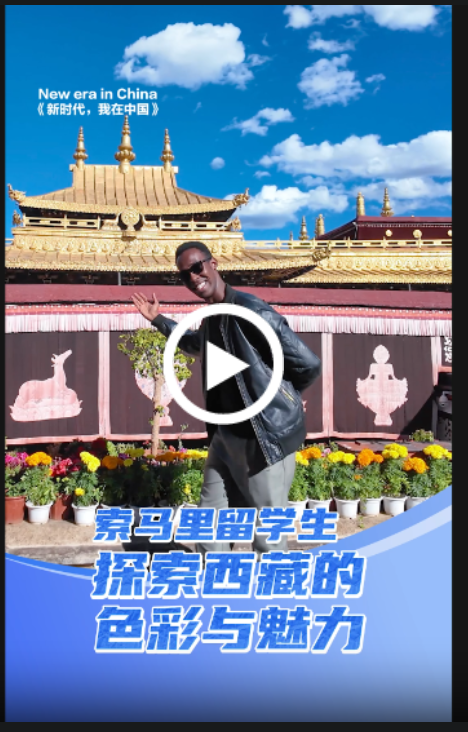 在西藏的藍天白云下,索馬里留學(xué)生陽光(Musab Abdikadir)覺得這里的風(fēng)景宜人、色彩斑斕,令人心馳神往。作為中央民族大學(xué)的學(xué)生,陽光在中國已生活了八年,初次踏足西藏,他便被這片充滿新鮮感的土地和震撼心靈的美景所打動。