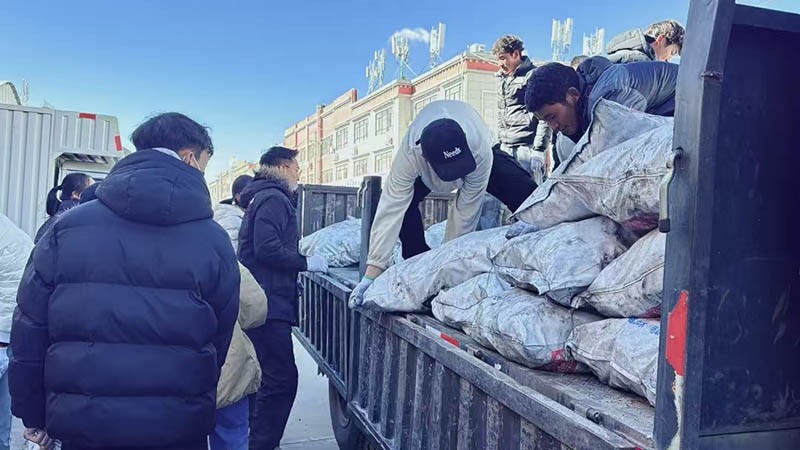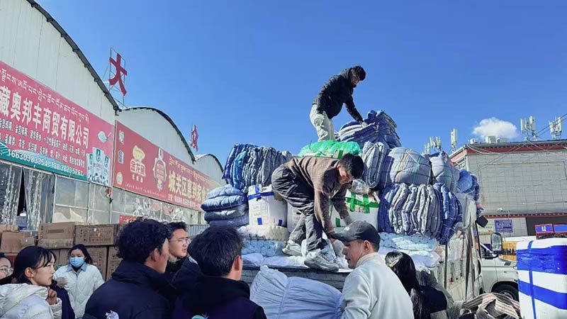 立馬行動起來!他們自籌資金,陳軍亮還聯(lián)系到一些戰(zhàn)友,共同集資采購救災物品。作為公益機構負責人,王順利和她的小伙伴,第一時間買了從西安轉機飛往拉薩的機票,并在路上聯(lián)絡西藏的伙伴,采購物資足足裝了3卡車,共30多噸,價值超過40萬元,緊急運輸發(fā)往定日。