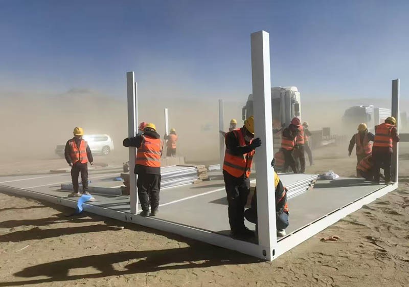 據(jù)介紹,災區(qū)海拔高達4000多米,氣溫只有-13℃,所以參與搭建的工人,必須是之前有過高原作業(yè)經(jīng)驗的?!凹b箱房是緊缺物資,我們早點到,就能讓更多人得到幫助?!碑?shù)刎撠熑苏f。