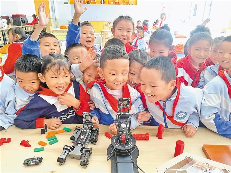 在桑珠孜區(qū)青島小學(xué)的科學(xué)課堂上,智能實(shí)驗(yàn)臺(tái)前圍滿了興致勃勃的孩子,他們手持 3D 打印筆,精心繪制著心中的“太空基地”。作為西藏首個(gè)啟動(dòng)“ STEM ”科學(xué)課程的地區(qū),這里不僅建成了全區(qū)首個(gè)小學(xué)科創(chuàng)實(shí)驗(yàn)室,還被教育部認(rèn)定為西藏唯一的全國(guó)“白名單”科創(chuàng)賽事基層組織單位?!耙郧?,孩子們只能從課本上了解實(shí)驗(yàn),現(xiàn)在能親手操作機(jī)器人、設(shè)計(jì)航天模型?!鼻鄭u小學(xué)黨支部書記周杰介紹道??苿?chuàng)課程的開展,如同一把鑰匙,打開了孩子們創(chuàng)新思維和科學(xué)探索的大門,為高原青少年搭建起展示科學(xué)素養(yǎng)與創(chuàng)新能力的舞臺(tái),推動(dòng)當(dāng)?shù)亟逃聵I(yè)邁向新高度。