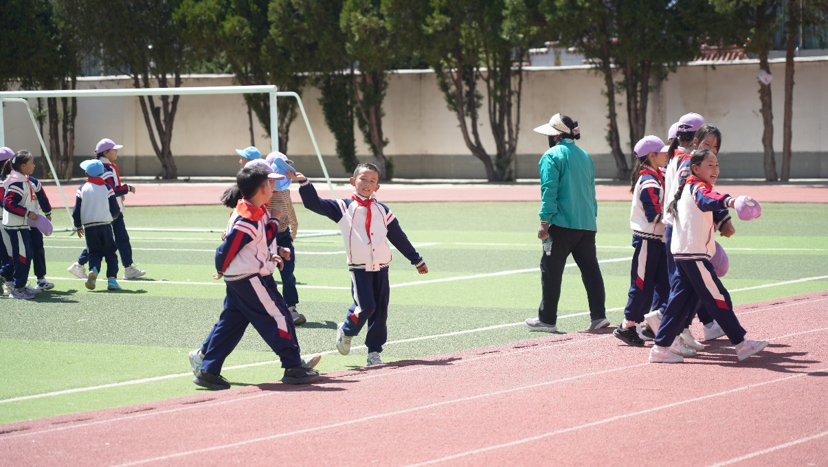 “利利老師,我們來(lái)玩老鷹抓小雞?!辈賵?chǎng)上,剛剛整隊(duì)完,正自由活動(dòng)的學(xué)生喊學(xué)校的湖南援藏教師、體育學(xué)科教研組組長(zhǎng)戴勝利。