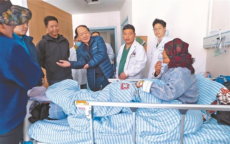 圖為南京市第一醫(yī)院關節(jié)外科專家團隊了解患者術后康復情況。格桑倫珠 攝