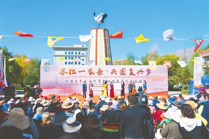 為增進江蘇、西藏兩地人民文化交流,促進民族團結,共同鑄牢中華民族共同體意識,由江蘇省委宣傳部、拉薩市委宣傳部、江蘇援藏前方指揮部、江蘇省文聯(lián)主辦,拉薩市文聯(lián)、拉薩市文化局、拉薩融媒、江蘇援藏對口縣區(qū)承辦的“蘇拉一家親·共圓復興夢”惠民演出暨文化交流活動于10月13日至19日在拉薩開展。本次惠民演出包含歌曲、舞蹈、木偶、魔術等,通過非物質文化遺產藝術和現(xiàn)代藝術的碰撞,展示了蘇藏兩地特色藝術文化,促進交往交流交融。