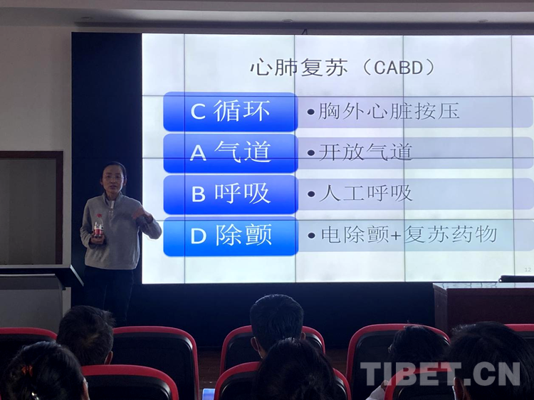 義診之后,北京第七批援藏醫(yī)療隊(duì)代表劉海霞醫(yī)生對(duì)社區(qū)衛(wèi)生院醫(yī)護(hù)人員進(jìn)行了心肺復(fù)蘇等急救培訓(xùn),參與義診的專家、醫(yī)生就社區(qū)衛(wèi)生院醫(yī)護(hù)人員在日常工作中所遇到的臨床問(wèn)題進(jìn)行解答。