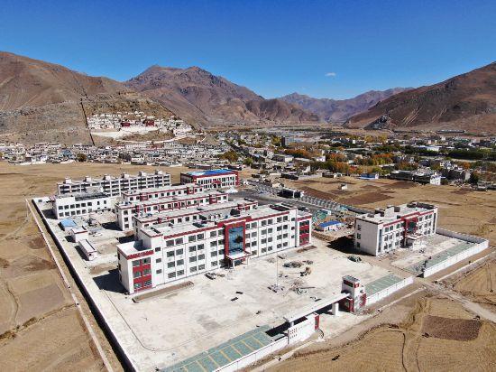 圖為已進入收尾階段的南木林縣濰坊小學建設工地。這座標準化寄宿制學校總投資7524萬元(其中濰坊援藏投資3899萬元),是濰坊援藏近20年來單體項目投資最多、建筑體量最大的民生項目(圖為無人機航拍)。扎巴旺青 攝