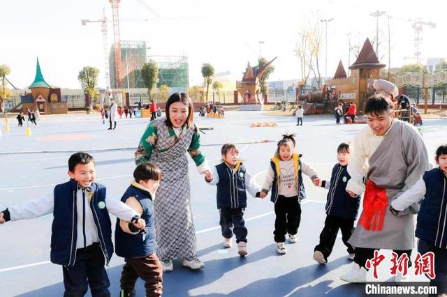 12月1日,在黃石大冶市尹家湖幼兒園就業(yè)的西藏教師赤列旦增和拉珍在教小朋友跳民族舞。[詳細(xì)]