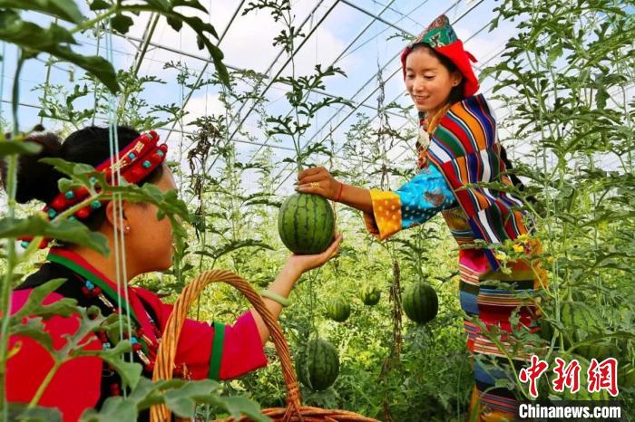 (資料圖)種植戶在采摘西瓜?!∩綎|援藏干部供圖