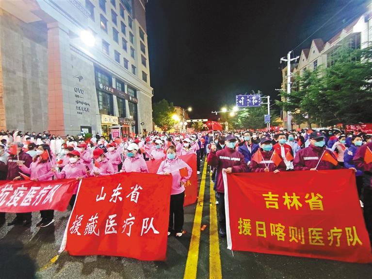 血脈相連、共克時艱。在日喀則市抗擊新冠肺炎疫情的緊要關頭,山東省委、省政府和吉林省委、省政府第一時間組織支援抗疫醫(yī)療隊,馳援日喀則。全體醫(yī)療隊隊員響應組織號召,主動請纓、逆行出征,帶著山東、吉林人民的深情厚誼,以生命守護生命、以大愛砥礪仁心,苦戰(zhàn)鏖戰(zhàn)40多個日日夜夜,為日喀則奪取抗擊新冠肺炎疫情全面勝利作出了突出貢獻。